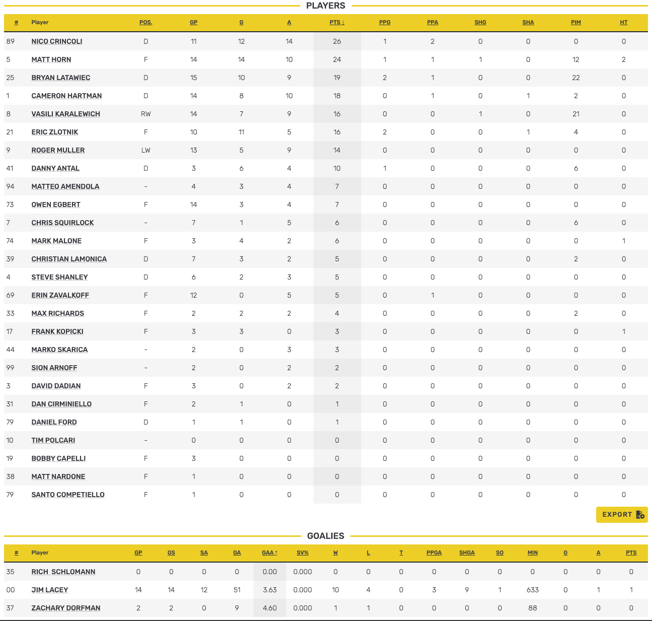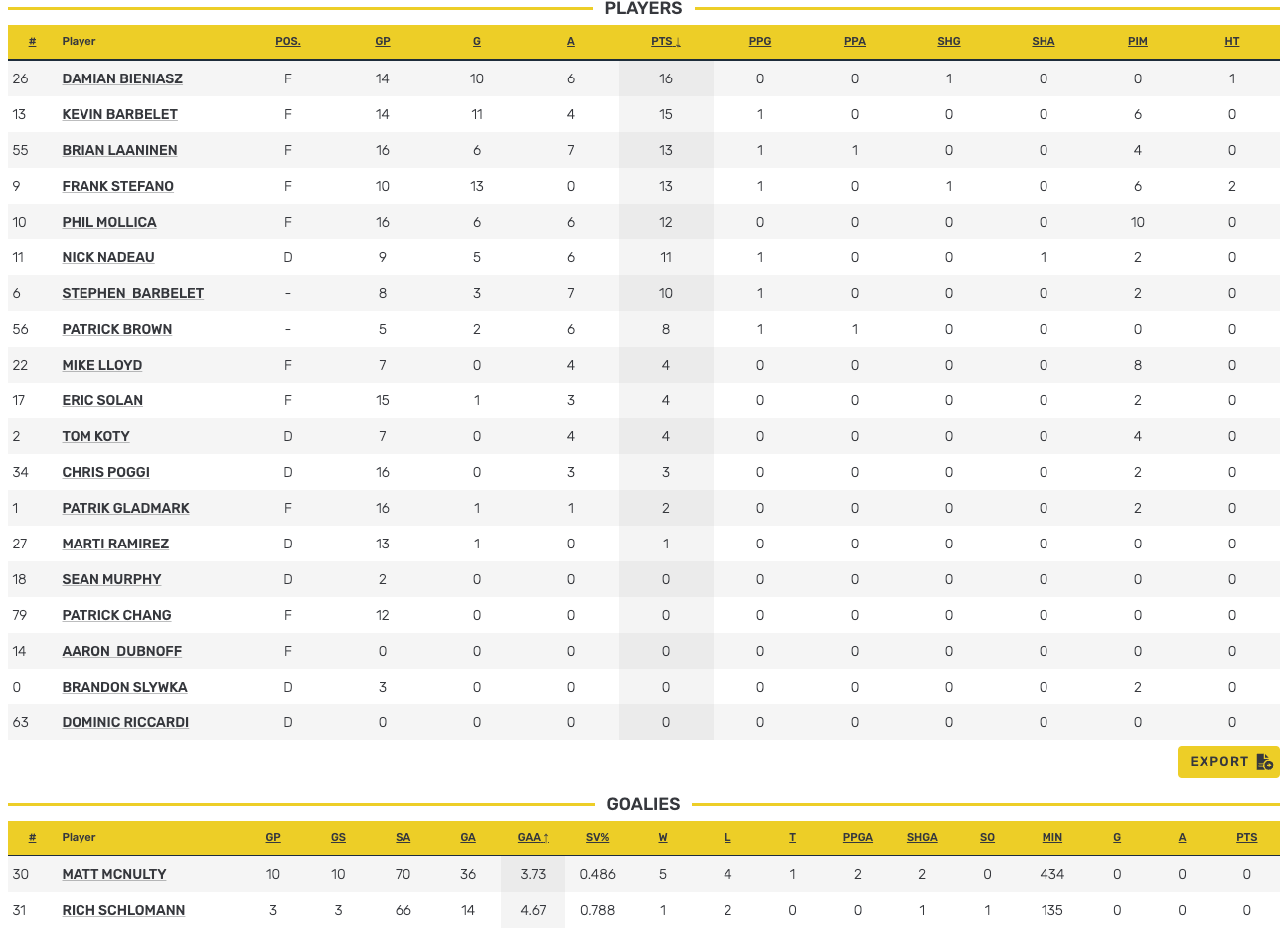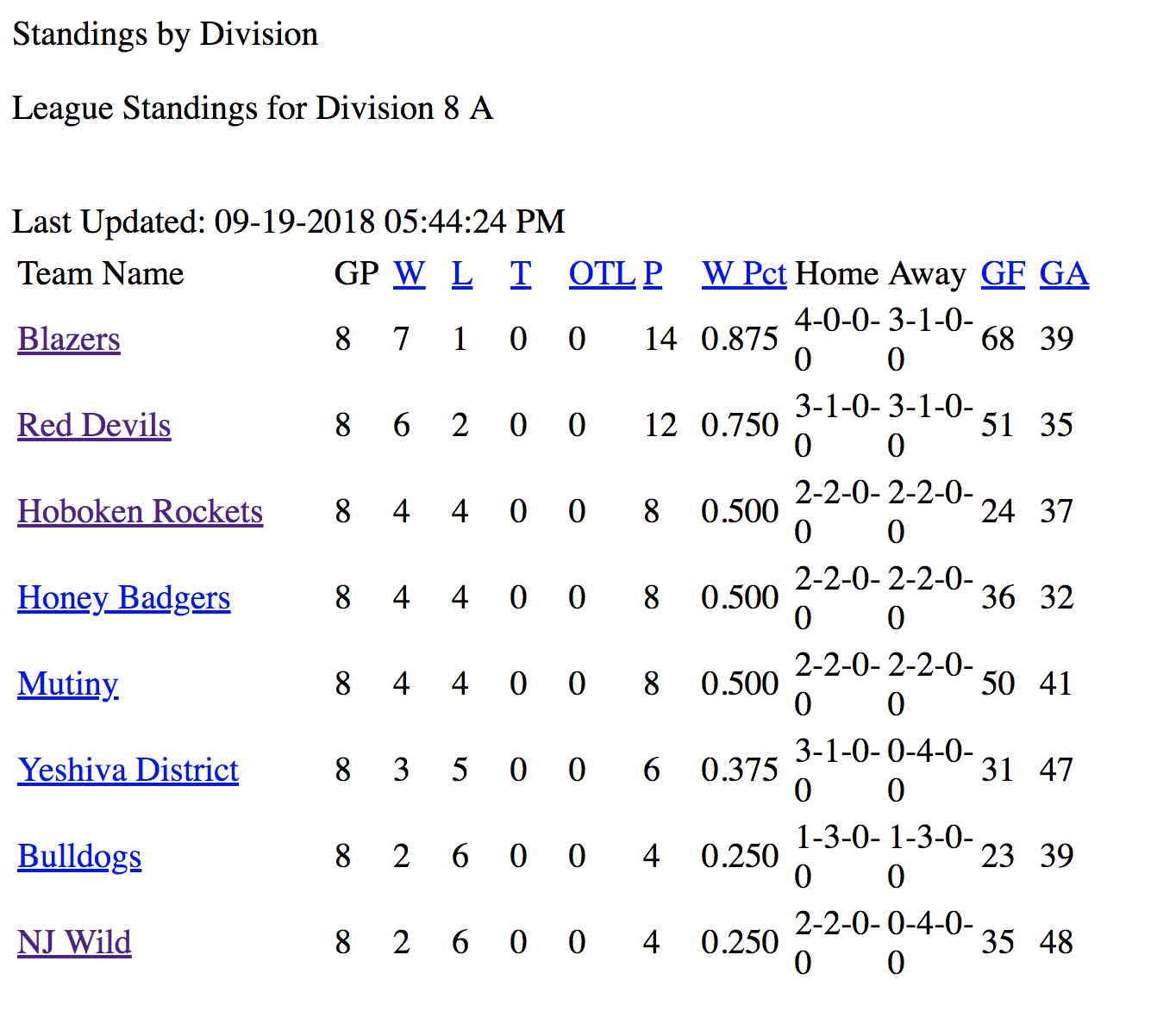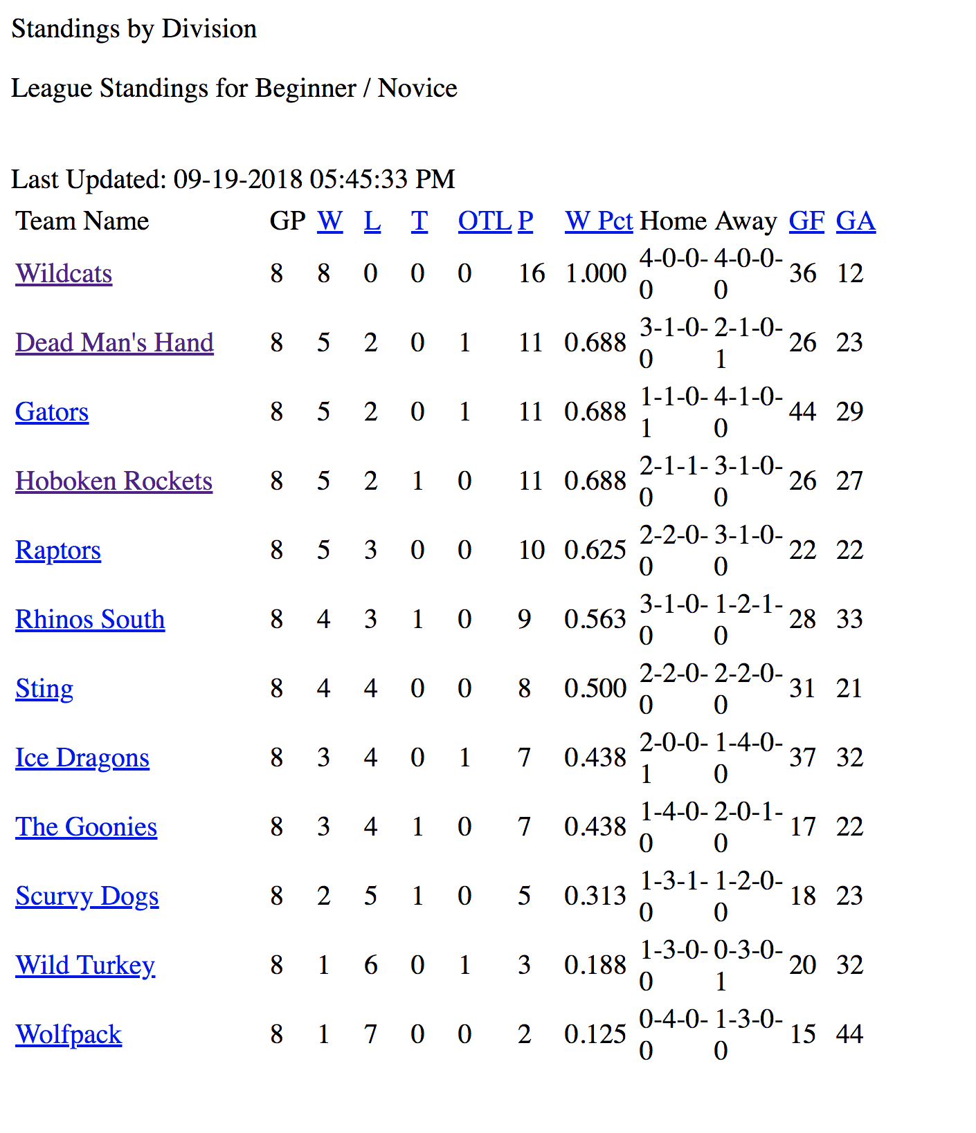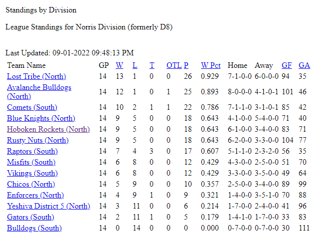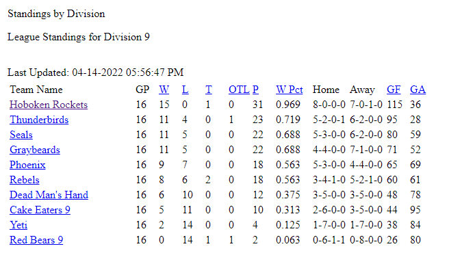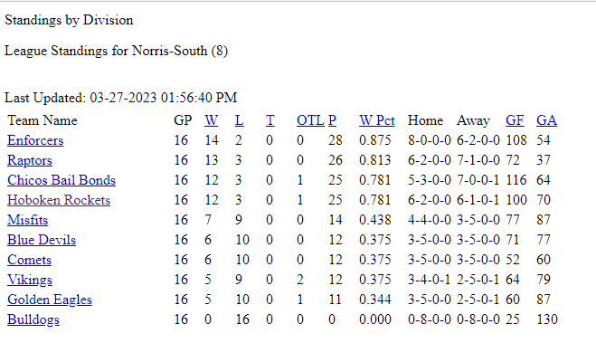 PAST STANDINGS & STATS