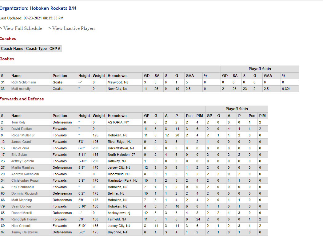 No Stats Available for this season